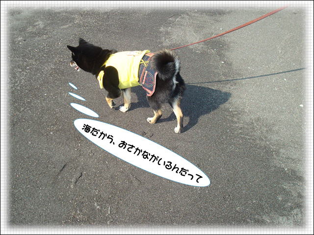 海に少しは興味があるみたいですが、やっぱり水は怖い!